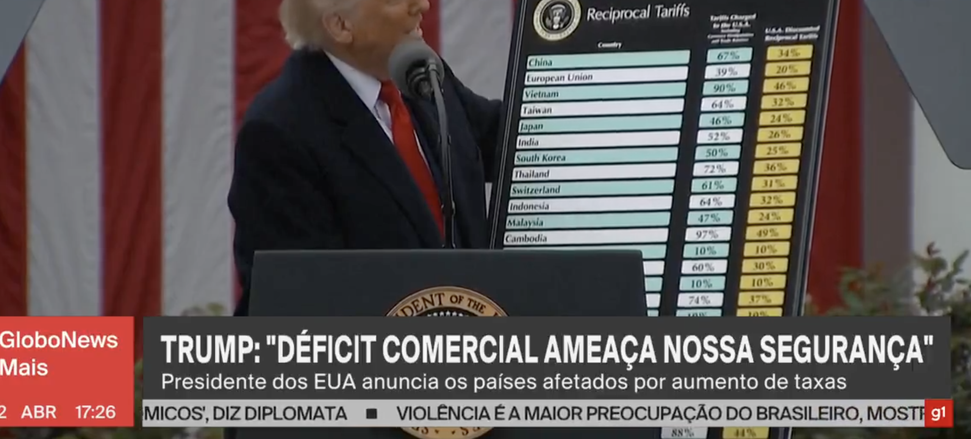 (Brasília-DF, 03/04/2025) No final do dia desta quarta-feira, 02, o presidente Donald Trump anunciou que os Estados Unidos irão introduzir "tarifas recíprocas" aos países que fazem comércio com os americanos - o Brasil será taxado em 10%.