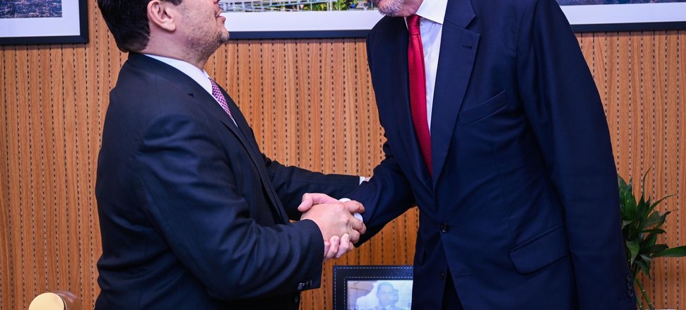 (Brasília-DF, 04/04/2025). Nesta quinta-feira, 03, o senador Davi Alcolumbre(União-AP), presidente do Senado e do Congresso recebeu o embaixador André Corrêa do Lago, presidente da Conferência das Nações Unidas sobre Mudança do Clima (COP 30).