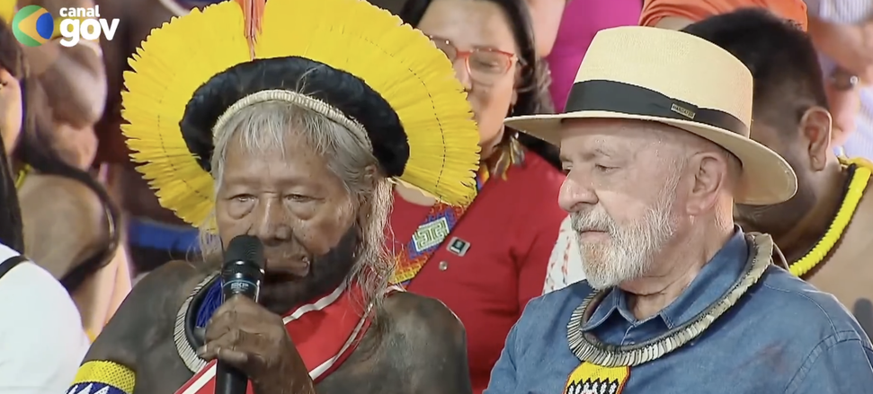 Em seu discurso, cacique Raoni enalteceu o compromisso de Lula com os povos indígenas e pediu que o presidente trabalhe um sucessor que dê continuidade às políticas indigenistas do governo.