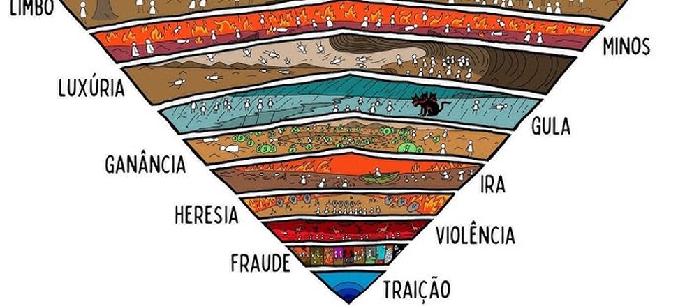 Fiquei impressionado e me lembrei do livro Dos Infernos, a melhor parte da obra monumental “Divina Comédia”, do italiano Dante Alighieri, talvez a melhor da humanidade.