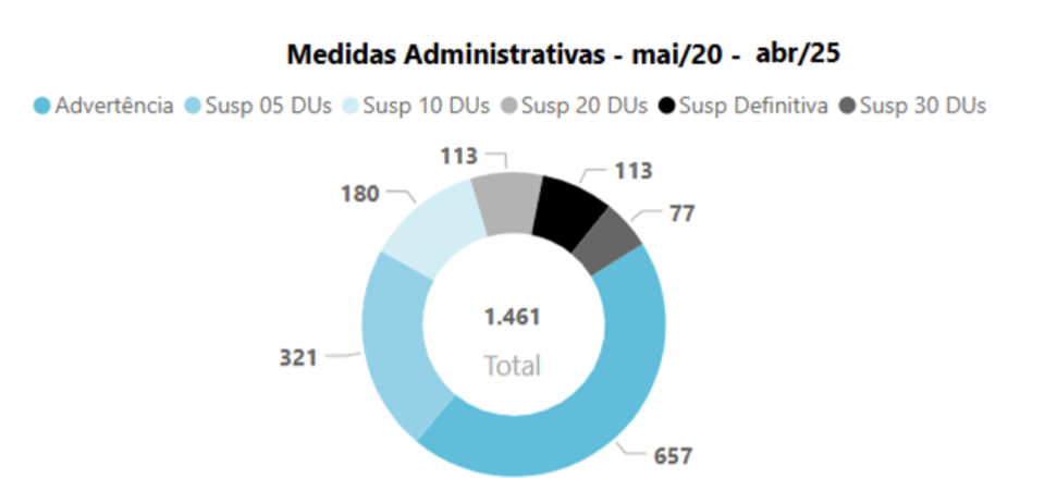 Duzentos e dezessete atingiram 5 pontos; 40 profissionais, 10 pontos; 13 agentes, 15 pontos; e 6 atingiram a pontuação máxima, de 20 pontos, e estão suspensos de atuar com as instituições financeiras autorreguladas por 12 meses.