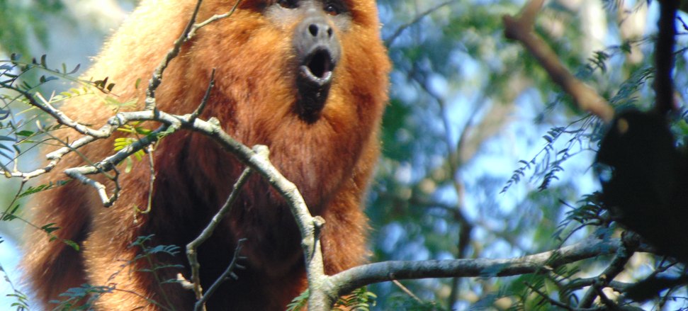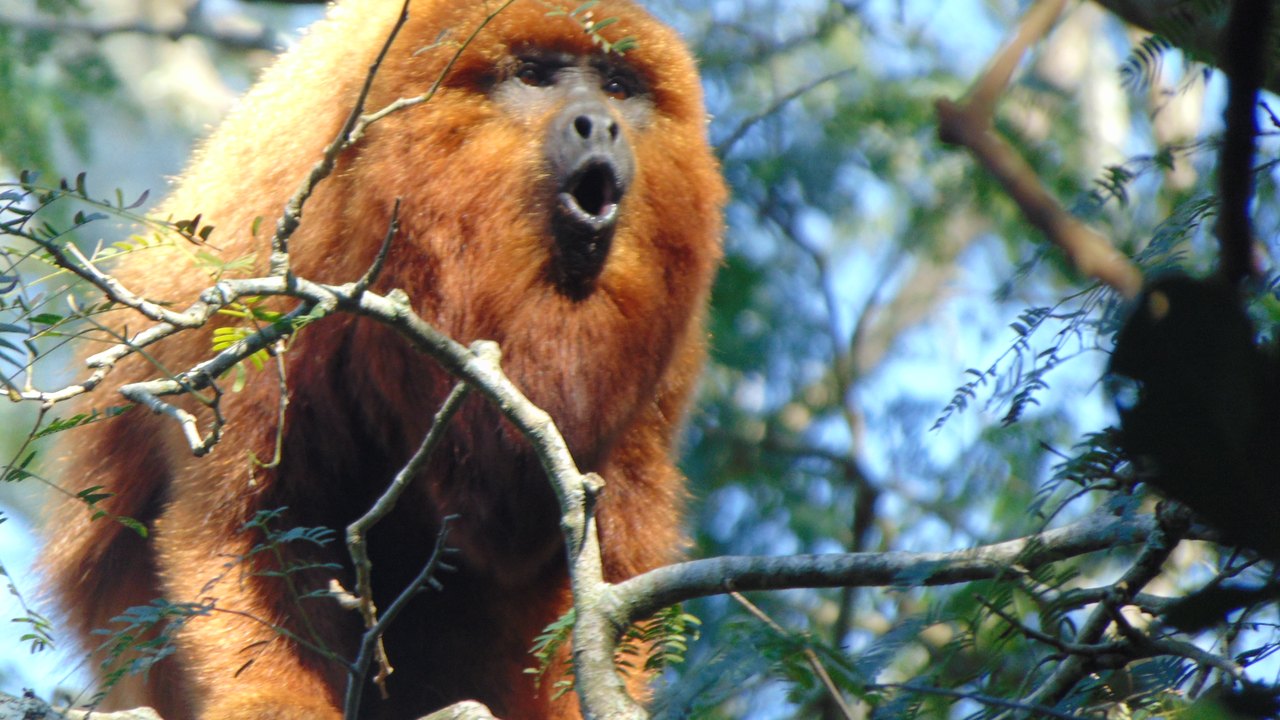 O homem e a natureza. Os macacos bugios-ruivos nativos de região da Mata Atlântica da cidade do Rio de Janeiro jogam fezes uns nos outros em meio a batalhas.