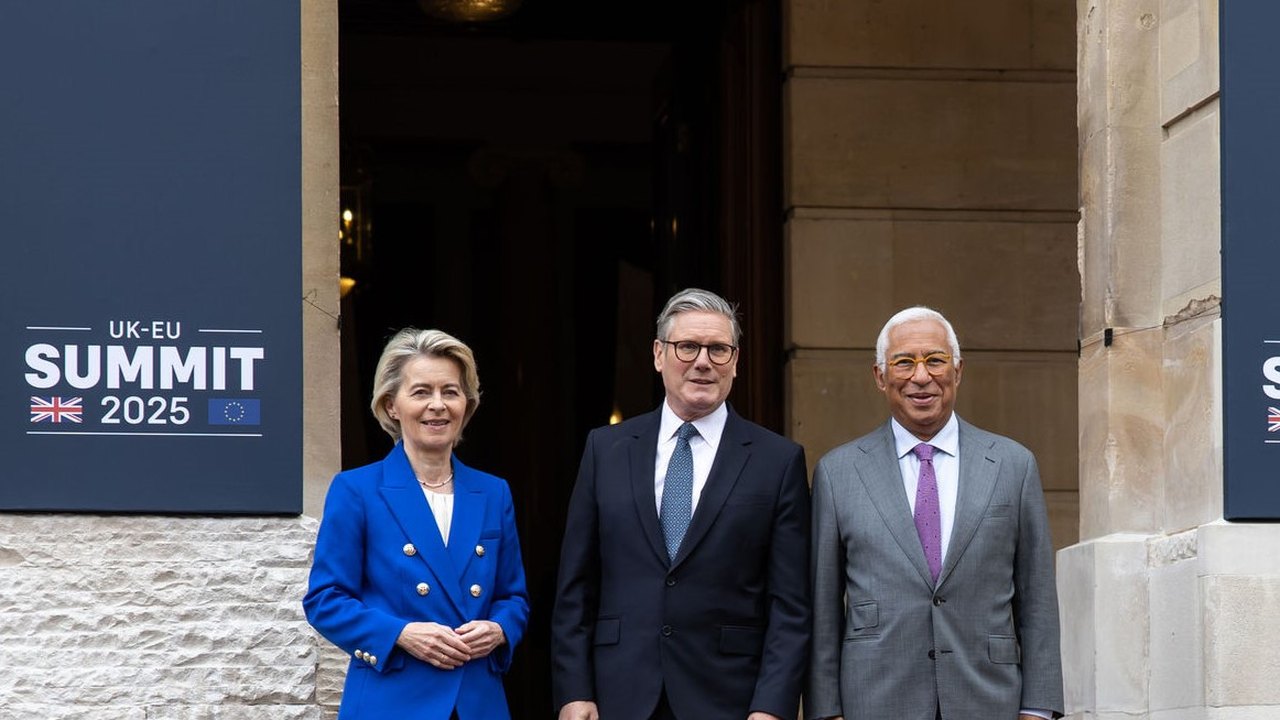 Ao lado da presidente da Comissão Europeia, Ursula von der Leyen, e do presidente do Conselho Europeu, António Costa, na Lancaster House, em Londres, Starmer disse que o acordo marca "uma nova era em nosso relacionamento".