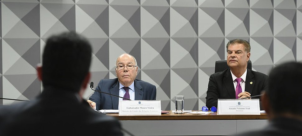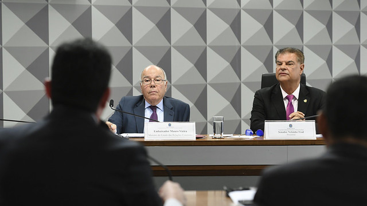 (Brasília-DF, 21/05/2025) Nesta terça-feira, 20, o ministro de Relações Exteriores (MRE), Mauro Vieira, atendendo requerimentos do senador Sérgio Morr( União-PR) para que ele desses explicações sobre a visita do Presidente Lula à Rússia assim como sobre saída de venezuelanos opositores da Embaixada do Brasil.