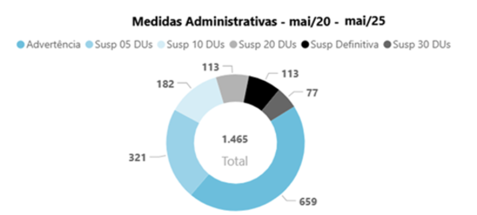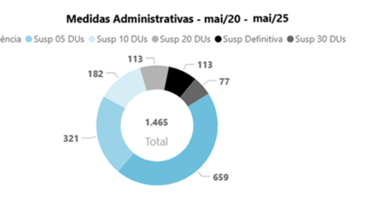Segundo o estudo, 1.465 sanções foram aplicadas pelos bancos a correspondentes por descumprimento às normas da Autorregulação do Consignado desde o início de sua vigência, em 2020. Cento e treze empresas seguem impedidas de atuar, e 4 receberam suspensões temporárias e advertências no mês de maio de 2025 por terem cometido irregularidades.