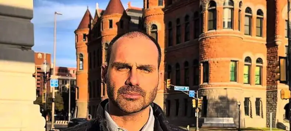 "E agora eu, que denuncio as verdadeiras violações de direitos humanos e perseguições políticas, essas mesmas pessoas pedem para que o Moraes confisque o meu passaporte e me prenda por abolição violenta do Estado Democrático de Direito. Dá para acreditar?", disse Eduardo Bolsonaro.