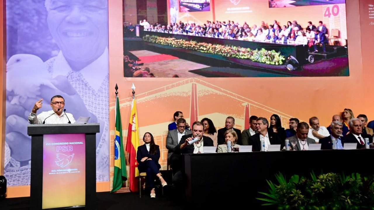 (Brasília-DF, 02/06/2025) Na noite dessa sexta-feira, 30, foi realizada a abertura do do XVI Congresso Nacional do PSB, em Brasília, que vai oficializar o prefeito do Recife, João Campos, como presidente nacional do Partido Socialista Brasileiro (PSB). Presente ao evento ele fez o discurso no final do evento.