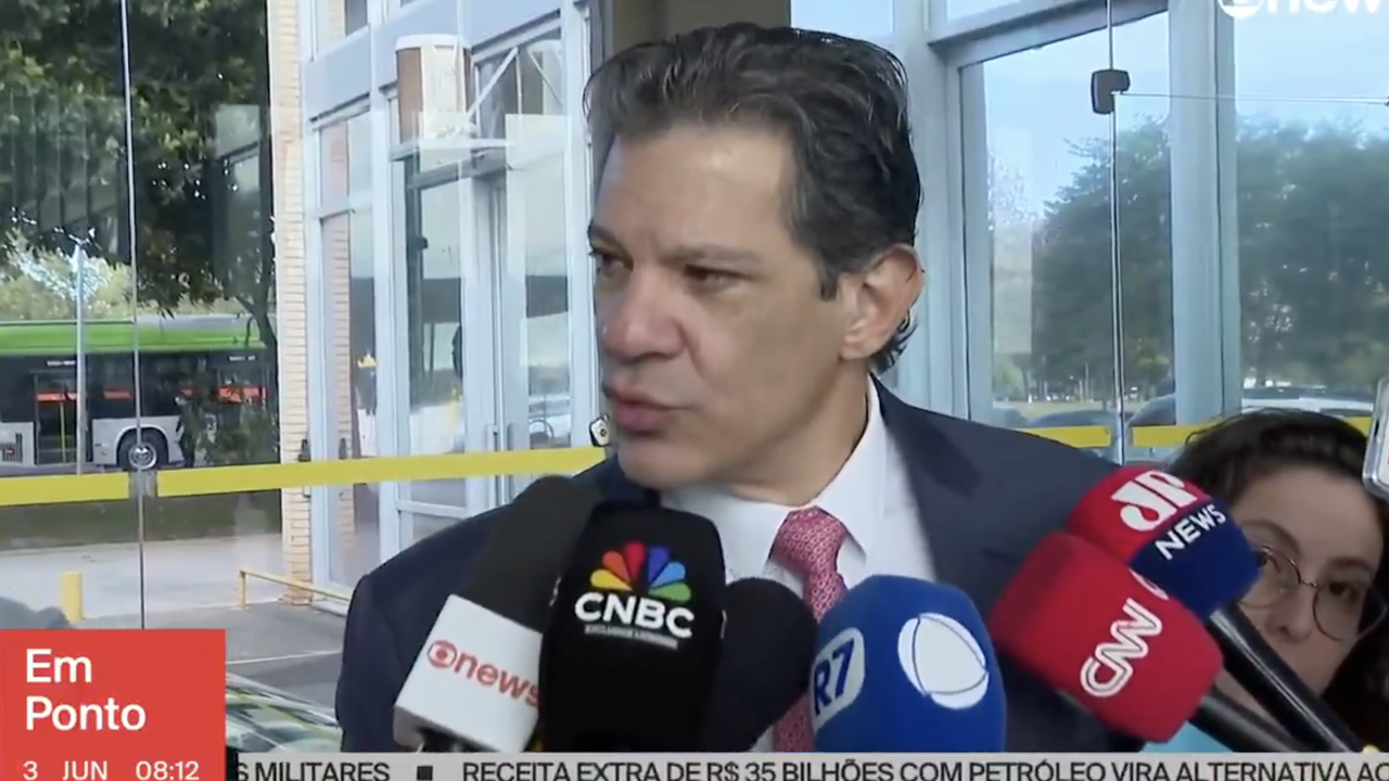 Fernando Haddad disse que ao longo do dia haverá uma solução para o IOF, não quis afirmar sobre apresentação de projetos estruturantes, mas que a meta fiscal será mantida