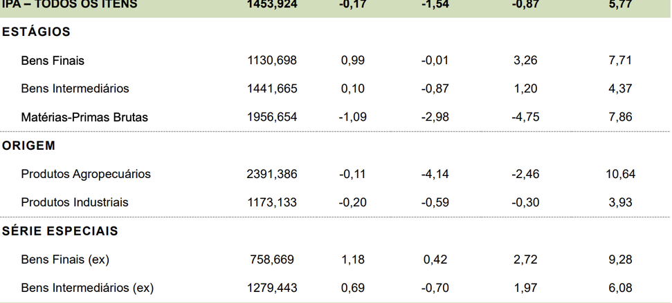 O Índice de Preços ao Produtor Amplo (IPA) cai 1,54%