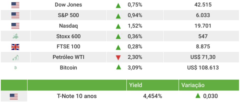 Nos EUA, as bolsas também fecharam em alta. Após o susto inicial com o conflito, investidores especulam que ele se manterá controlado, sem a entrada de novos participantes que poderiam levar a guerra a uma escala regional.