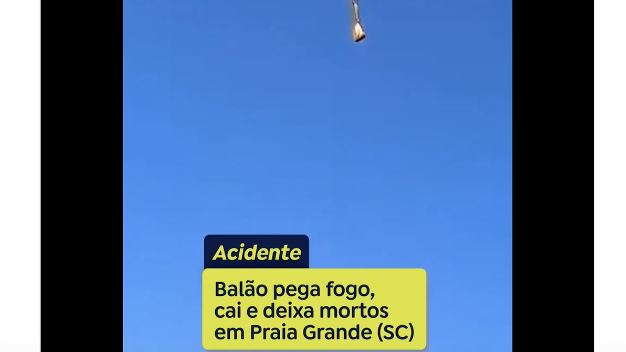 (Brasília-DF, 23/06/2025). Na manhã deste sábado, 21, na Praia Grande, em Santa Catarina, um balão de ar quente com 21 pessoas a bordo que pegou fogo e caiu. Até o momento estão confirmadas as mortes de 8 pessoas. 13 pessoas conseguiram escapar da morte imediata. A cidade catarinense é um dos destinos mais conhecidos para prática de balonismo com ar quente.