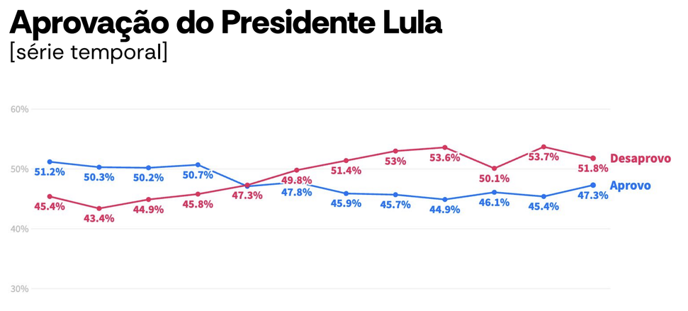AtlasIntel mostra que avaliação negativa do presidente Lula e do Governo Lula ainda estão acima de 50% em junho, mas recuou frente a maio; desaprovação do governo é de 52,1% e do presidente Lula é de 51,8%