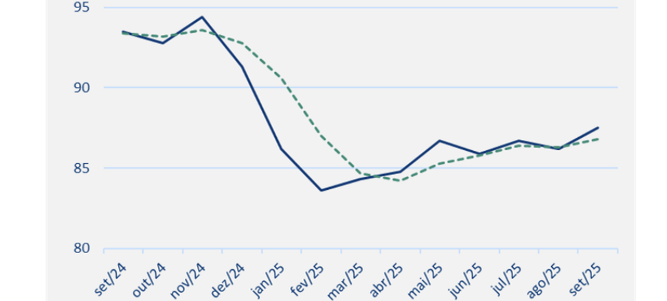 (Brasília-DF, 24/09/2025) Na manhã desta quarta-feira, 24, a FGV-IBRE divulgou o seu Índice de Confiança do Consumidor (ICC) que subiu 1,3 ponto, para 87,5 pontos. Em médias móveis trimestrais, o índice avança 0,5 ponto, para 86,8 pontos.