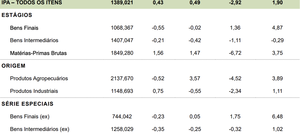 O Índice de Preços ao Produtor Amplo (IPA) acelera 0,49%