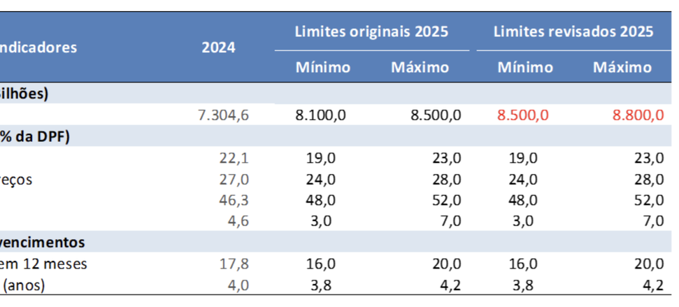 (Brasília-DF, 30/09/025) Também nesta terça-feira, 30, o Tesouro Nacional anuncia a revisão dos limites de referência para o estoque da Dívida Pública Federal(DPF) definidos em seu Plano Anual de Financiamento, a serem alcançados ao final do exercício.