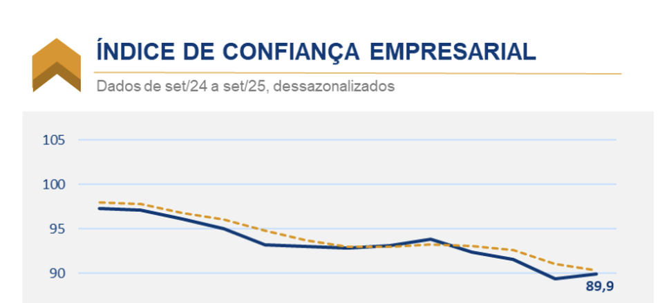 (Brasília-DF, 01/10/2025) Na manhã desta quarta-eira, 01, o FGV-IBRE divulgou o seu Índice de Confiança Empresarial (ICE) do FGV IBRE avançou 0,5 ponto em setembro, para 89,9 pontos. Na métrica de médias móveis trimestrais, manteve-se a tendência de queda, com um recuo de 0,8 ponto, inferior ao -1,5 ponto do mês anterior.