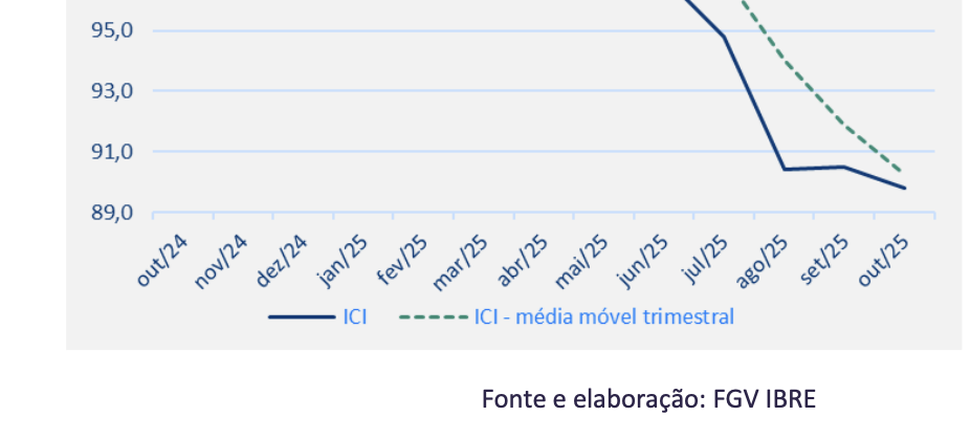 (Brasília-DF, 29/10/2025) A Política Real teve acesso ao Índice de Confiança da Indústria (ICI) do FGV IBRE que caiu 0,7 ponto em outubro, para 89,8 pontos. Em médias móveis trimestrais, o índice recuou 1,7 pontos, para 90,2 pontos.