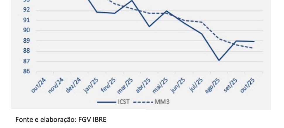 (Brasília-DF, 30/10/2025) Na manhã desta quinta-feira, 30, o FGV-IBRE divulgou o seu Índice de Confiança de Serviços (ICS) do FGV IBRE registrou estabilidade em outubro ao variar -0,1 ponto, para 88,9 pontos.