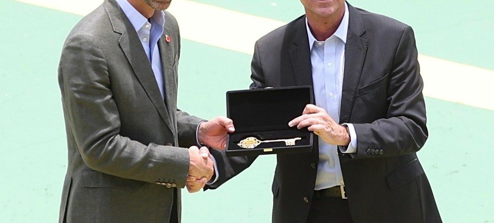 O prefeito do Rio, Eduardo Paes, entregou a chave da cidade para William, no morro do Pão de Açúcar, na manhã desta segunda-feira ,03. O herdeiro da coroa britânica recebeu as boas-vindas e revelou sua admiração pela capital fluminense.
