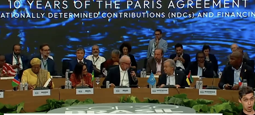 Lula insistiu na necessidade de revitalizar as metas do Acordo de Paris, por meio das Constituições Nacionalmente Determinadas, as chamadas NDCs (sigla em inglês).
