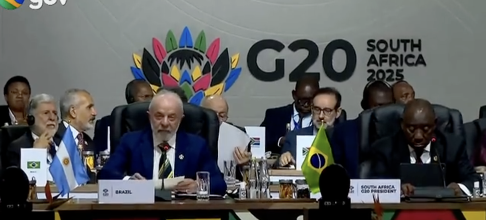 (Brasília-DF, 22/11/2025). Neste sábado,22, durante a Cúpula do G20, em em Joanesburgo, na África do Sul, o presidente Luiz Inácio Lula da Silva defendeu que o grupo assuma o protagonismo na elaboração de um Mapa do Caminho para a transição energética e o abandono progressivo da dependência de combustíveis fósseis.