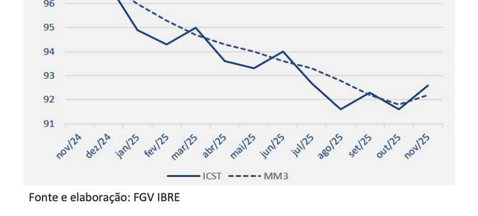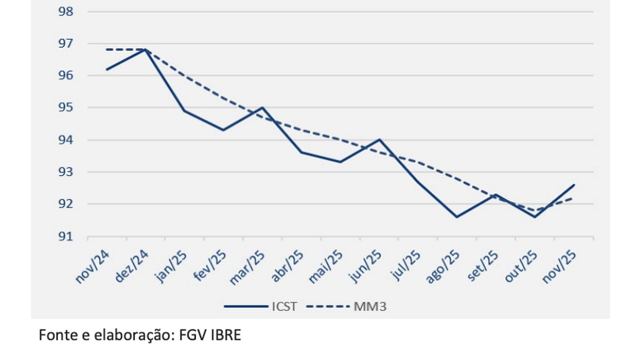 (Brasília-DF, 25/11/2025) O FGV-IBRE divulgou o seu Índice de Confiança da Construção (ICST) subiu 1,0 ponto em novembro, para 92,6 pontos, maior nível desde julho deste ano (92,7 pontos). Na média móvel trimestral, o índice avançou 0,4 ponto.