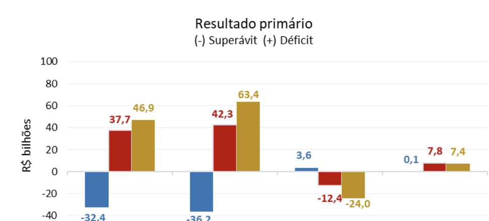 O setor público consolidado registrou superávit primário de R$32,4 bilhões em outubro, ante superávit de R$36,9 bilhões no mesmo mês de 2024. Houve superávit de R$36,2 bilhões no Governo Central e déficits de R$3,6 bilhões nos governos regionais e de R$149 milhões nas empresas estatais. Em doze meses, o setor público consolidado acumulou déficit primário de R$37,7 bilhões, 0,30% do PIB, ante déficit de R$33,2 bilhões, 0,27% do PIB, nos doze meses acumulados até setembro.