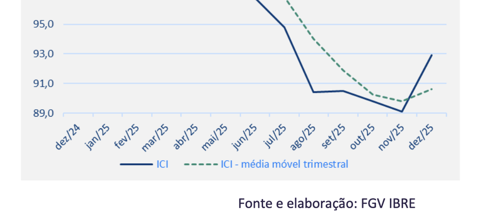 (Brasília-DF, 29/12/2025). Na manhã desta segunda-feira, 29, a FGV-IBRE informou o seu Índice de Confiança da Indústria (ICI) que subiu 3,8 pontos em dezembro, para 92,9 pontos. Em médias móveis trimestrais, o índice avançou 0,8 pontos, para 90,6 pontos.