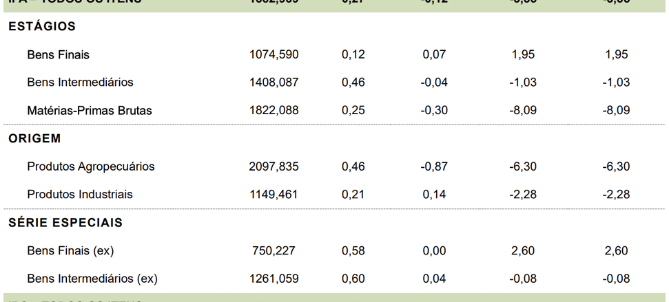 O Índice de Preços ao Produtor Amplo (IPA) cai 0,12%