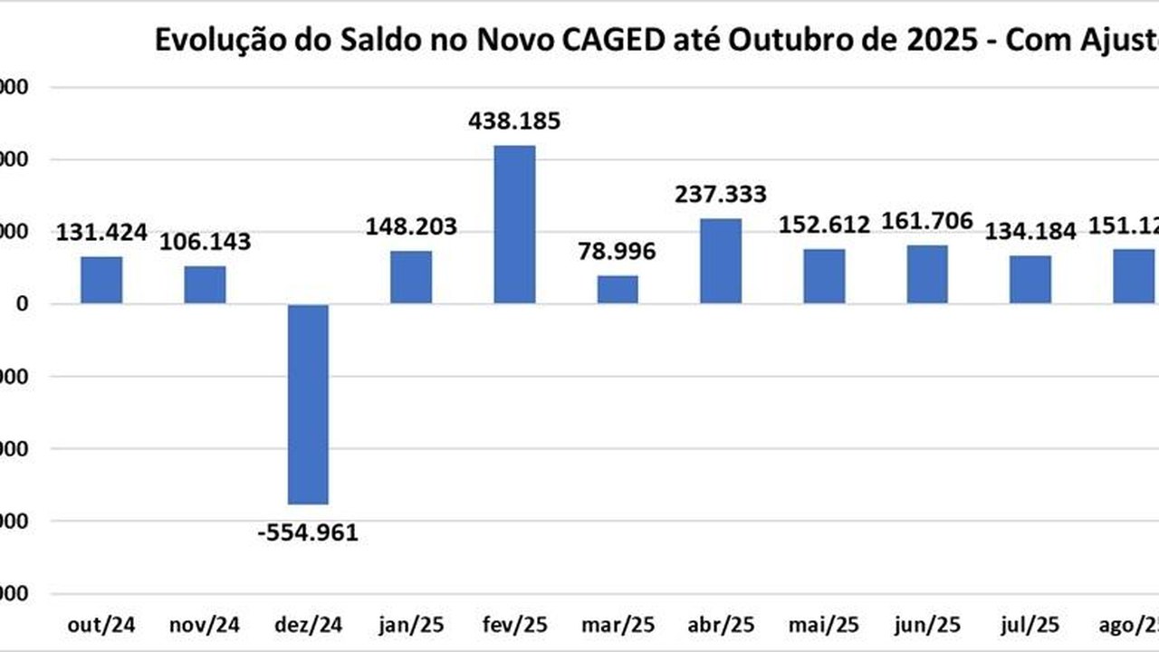 (Brasília-DF, 30/12/2025) Na tarde desta terça-feira, 30, o Ministério do Trabalho e Emprego divulgou os dados do Novo Caged (Cadastro Geral de Empregados e Desempregados), de novembro informando que o emprego celetista no Brasil apresentou aumento em novembro de 2025, registrando saldo de +85.864 postos de trabalho. Esse resultado decorreu de 1.979.902 admissões e de 1.894.038 desligamentos.