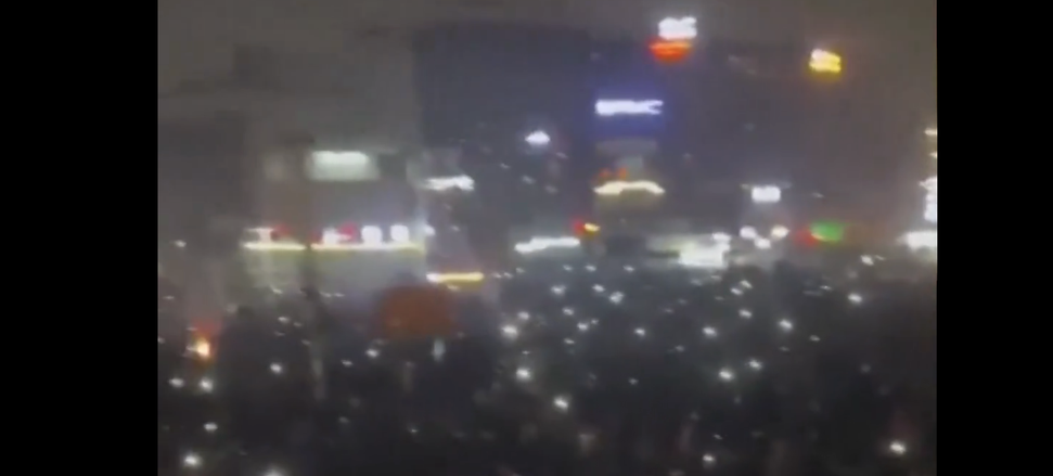 Imagens postadas nas redes sociais no sábado, vindas de Teerã, mostram grandes multidões marchando por uma rua à noite, aplaudindo e cantando.