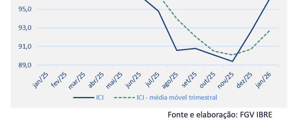 (Brasília-DF, 28/01/2026) Na manhã desta quarta-feira, 28. O FGV-IBRE divulgou seu Índice de Confiança da Indústria (ICI) que subiu 3,5 pontos em janeiro, para 96,1 pontos. Em médias móveis trimestrais, o índice avançou 0,9 pontos, para 96,4 pontos.