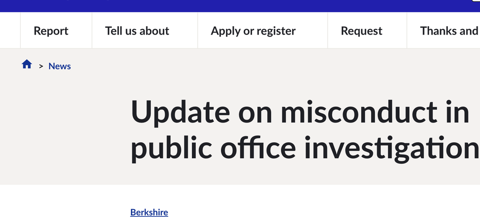 A Polícia do Vale do Tâmisa pode fornecer informações atualizadas sobre a investigação relativa ao crime de conduta indevida no exercício de cargo público. Na quinta-feira (19), detivemos um homem na faixa dos 60 anos, de Norfolk, sob suspeita de conduta indevida no exercício de cargo público. O homem detido foi libertado sob investigação. Também podemos confirmar que nossas buscas em Norfolk foram concluídas.