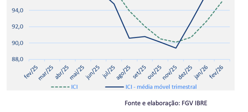 (Brasília-DF, 26/02/2026) Na manhã desta quinta-feira, o FGV-IBRE divulgou o seu Índice de Confiança da Indústria (ICI) que subiu 0,6 pontos em fevereiro, para 96,7 pontos. Em médias móveis trimestrais, o índice avançou 2,4 pontos, para 96,4 pontos.
