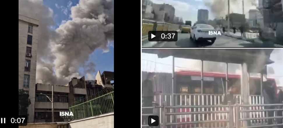 A mídia estatal iraniana relata, por sua vez, que foram ouvidos sons de três explosões no centro de Teerã.