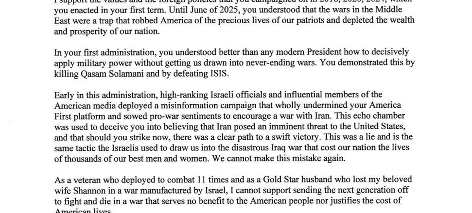 Na carta endereçada a Trump, Kent afirmou que "altas autoridades israelenses" e influentes jornalistas americanos semearam "desinformação", levando o presidente a comprometer sua plataforma "América em Primeiro Lugar".