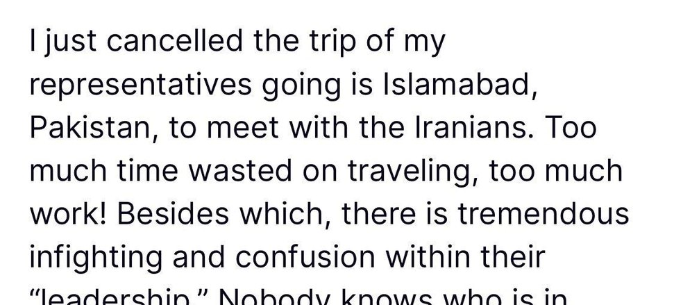 Trump postou na sua rede social Truth Social que ordenou a suspensão da viagem dos representantes Jared Kushner e Steve Witkoff afirmando que era "tempo demais desperdiçado em viagem, trabalho demais".