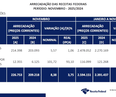 Arrecadação federal chegou a R$ 226,8 bilhões em novembro, correspondendo a um crescimento real de 3,8%, informa Receita Federal