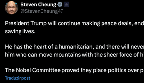 Casa Branca critica Comitê do Nobel de priorizar a política a paz ao nomear María Corina Machado, e não ao presidente americano Donald Trump.para o Nobel da Paz